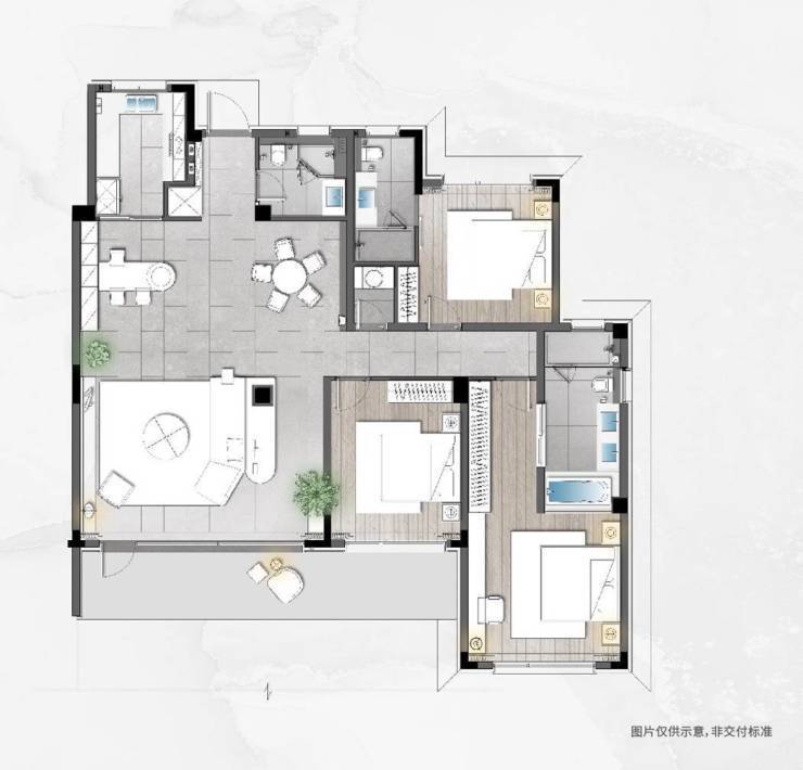·进深——超规格开间尺度进深有余裕,卧室双套间设计动静分离