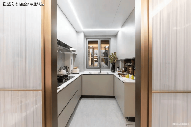 虹桥润璟建面约92㎡户型在厨房打造上完美展现了烹饪的仪式感与精致感。运用公元前1500年的玻璃拉丝工艺打造海派金属拉丝移门,让居者时刻品味海派美学。