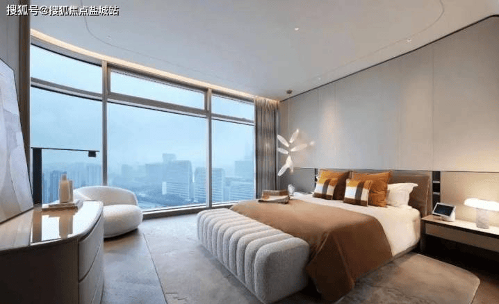 如果说杭州的一线江景大户型也有等级之分,那么七星潮鸣无疑就是那个刻着“••”符号的爱马仕喜马拉雅尼罗鳄皮包,它代表着尊贵、奢华与独一无二。走进七星潮鸣的示范区与样板间,您会仿佛踏入了一个手工高定的奢华世界,每一处细节都充满了写实的生活丰度与质感。 建筑层高高达4.3米,远超一般大平层的3.4米限制,搭配270°的落地玻璃设计,让整个空间显得更加通透、明亮,气场十足。站在这里,您可以感受到荷尔蒙在瞬间爆发,仿佛整个世界都在为您喝彩。