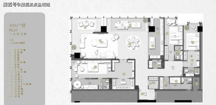 约400㎡的A户型,更是将江景视野发挥到了极致。弧形转角的设计,让您的目光能够无障碍地掠过波光粼粼的江面,总面宽约23米的壮阔景观,仿佛将整个世界都纳入了您的怀抱。一体化双厅,约11.6米×9.4米的超大尺寸,面积足足有109㎡,足以媲美他人的一套三房两卫,让您在享受尊贵生活的同时,也能感受到无与伦比的宽敞与舒适。