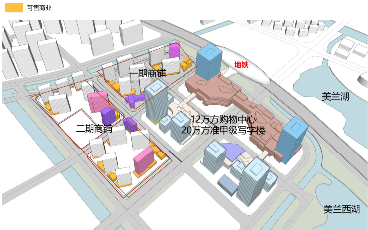 物业类型:70万方TOD综合体,包含约13.3万方住宅、12万方购物中心、20万方甲级写字楼、2.4万方可售商铺(美兰天地)等