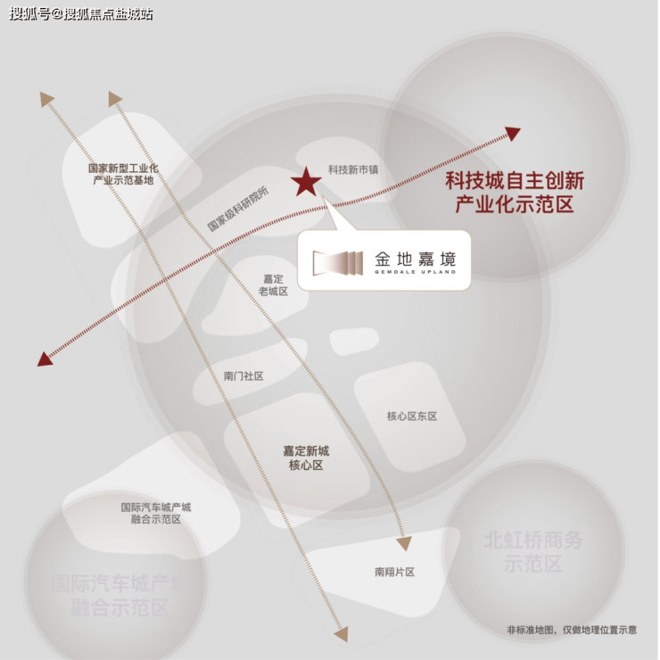 据规划,金地嘉境落址的嘉定新城徐行板块,被定位为科技城自主创新产业示范区,总投资约450亿,未来将建成约1.51平方公里的“科技小镇”。目前中科院应物所、中电科32所、华东计算机研究所等八所国家级科研院集结,同时还正在建造科嘉、盛创等示范园区,为高科技企业提供肥沃土壤。依托强有力的产业发展,以目前的发展势态,科创徐行将成为嘉定新城发展的一匹“大黑马”。