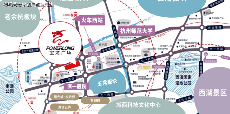 杭州科技城宝龙广场(城西宝龙广场),坐拥城西核心板块,是科技资源充分聚集、创业创新高度活跃的人才特区和科技新城,是重点发展区域,是科创产业引擎、高端人才聚集地。周边拥有超级独角兽3家,孵化和培育独角兽企业超150家。阿里巴巴、菜鸟、字节跳动等互联网龙头企业均在此办公。周边1公里内拥有3条地铁线、8条公交线,贯穿未来科技城,对未来科技城乃至整个城西商业地产的发展起到积极作用。杭州科技城宝龙广场项目商业总体量9万方,打造以饕餮美食、休闲娱乐、儿童教培为主业态的区域型购物中心。拥有浙江首个景观运河生活空间,6300㎡下沉广场,1000 ㎡景观运河独领风骚。项目将于2022年开业,以“未来 活力 智享”的概念倡导城市居民生活消费新主张。从地理位置来看,杭州科技城宝龙广场,位于余杭区绿汀路与余杭塘路交汇处,地处城西核心板块。壹览商业查询地图发现,距离该商场1公里范围,有3条地铁线、8条公交线,这些线路贯穿未来科技城,对未来科技城乃至整个城西商业地产的发展起到积极作用。城西宝龙广场—上市房企 宝龙钜献