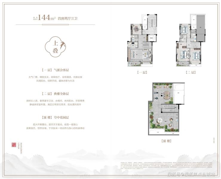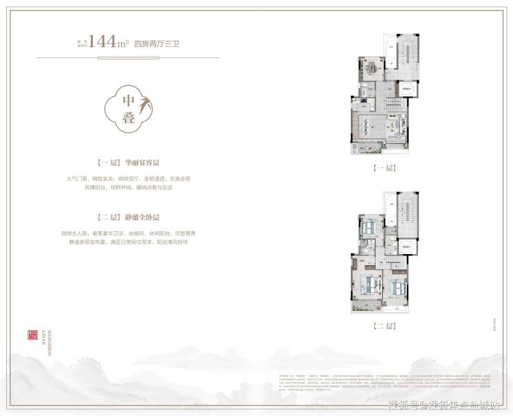 【主力户型】伴山叠院建筑面积约144㎡、城市合院建筑面积约187—195㎡