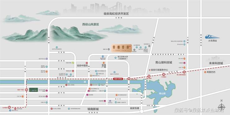 杭临快速路-留祥路西延快速路(规划)、临安南北高光主轴-农林大路、地铁16号线-农林大学站、青山湖站、青山湖隧道速达临安互通等,纵横路网,顺达全城。