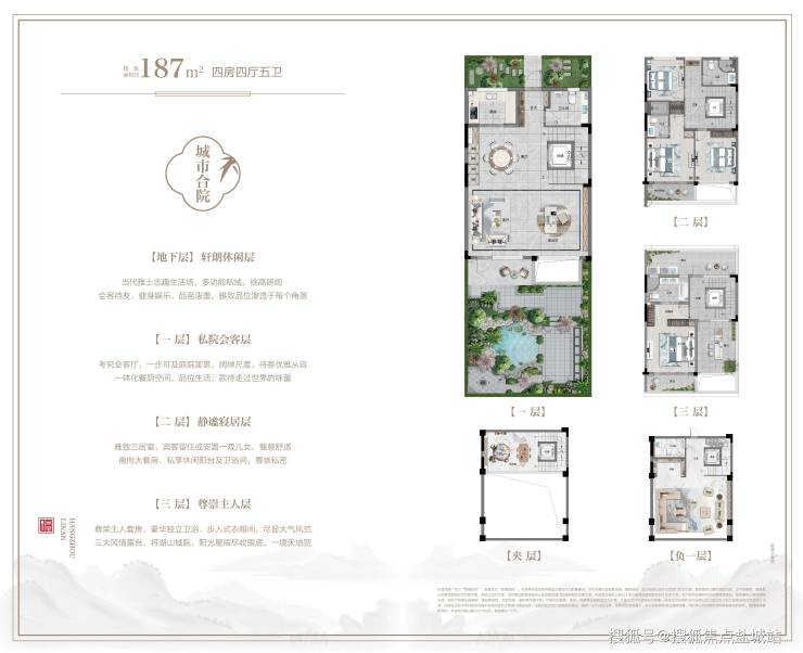深谙尊贵人居之道,精研建筑面积约187—195㎡城市合院,敬献名门,约5.6米高阔绰地下室空间,开阖之间尽显世家门第之风,重新定义人生大境美好。