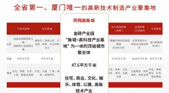 火炬集团开发园区占厦门不到3%的士地面积,实现厦门43%的工业产值,2020年火炬集团又肩负起47.6平方公里同翔高新城开发建设主体。