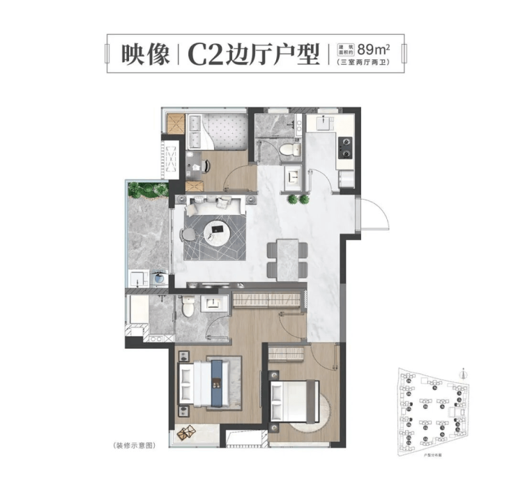 - 【映像3房89㎡边厅】 三房两厅两卫