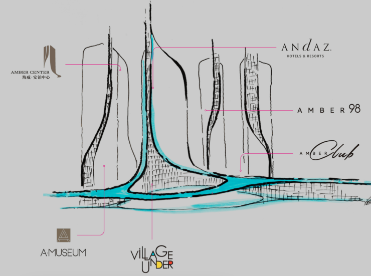 该项目由四座高140米的塔楼组成,综合体的独特张力通过酒店塔楼立面上标志性的巨型玻璃天幕彰显,加强了创造开放姿态的建筑设计理念。