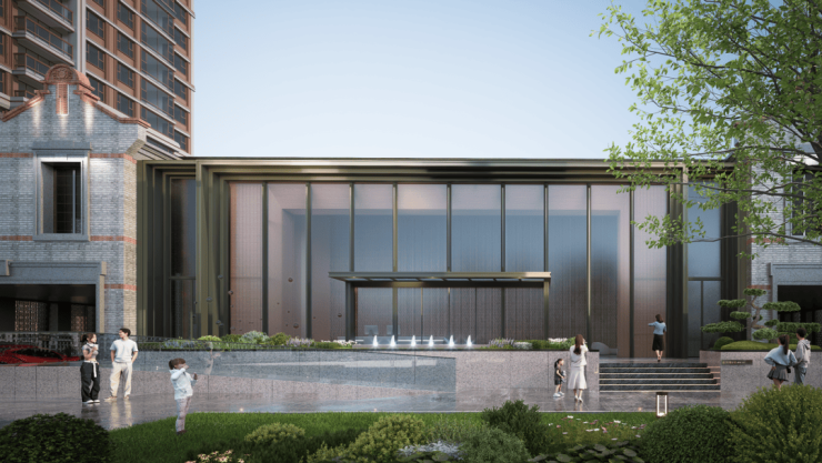 项目采用海派新中式的外立面和超高层的设计相辅相成的设计风格,高层住宅外立面由日清操刀设计,运用了大量红色元素,也与整盘海派红砖元素一脉相承。