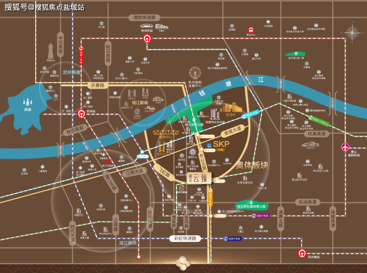 位于杭州奥体板块,与钱江新城合称“杭州CBD双核”,集合板块内优质配套资源,繁华触手可及。