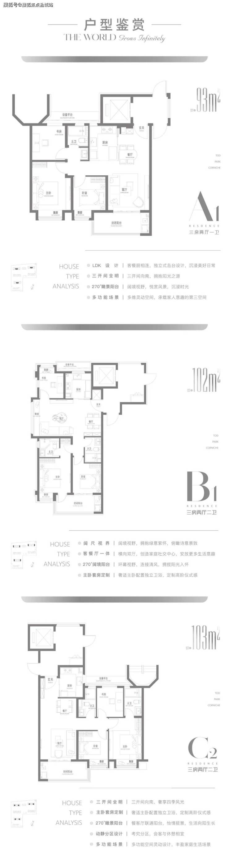 建面约93-103㎡3房户型,精装交付