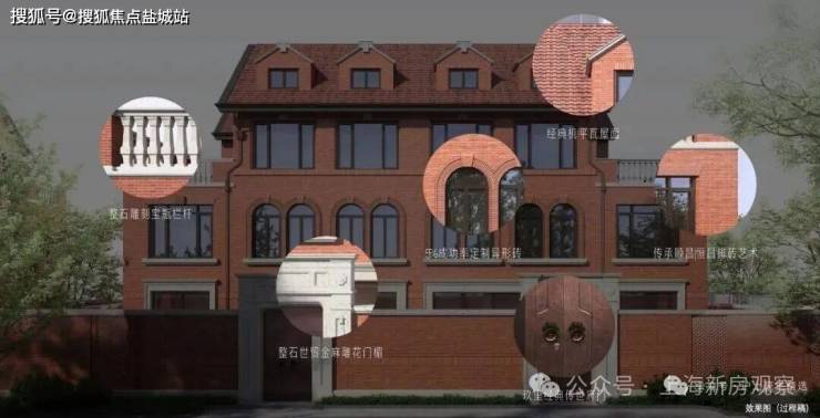 建筑基层石材选用近拟传统皇家建筑所用金山石的世贸金麻,经手工凿毛、酸洗做旧处理,搭配铜质落水管、水纹压花玻璃,每一处细节都在诉说海派大宅的优雅与贵重。