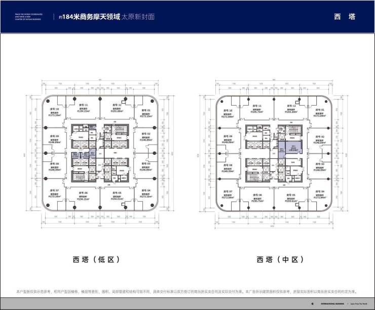· 西塔 约184米总部商务摩天空间 标准层面积约2000㎡