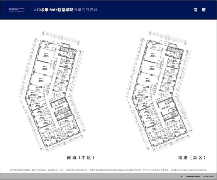 · 南塔 天幕商务风范 近 70 余米 IMAX 级巨幕景观 标准层建面约1990㎡