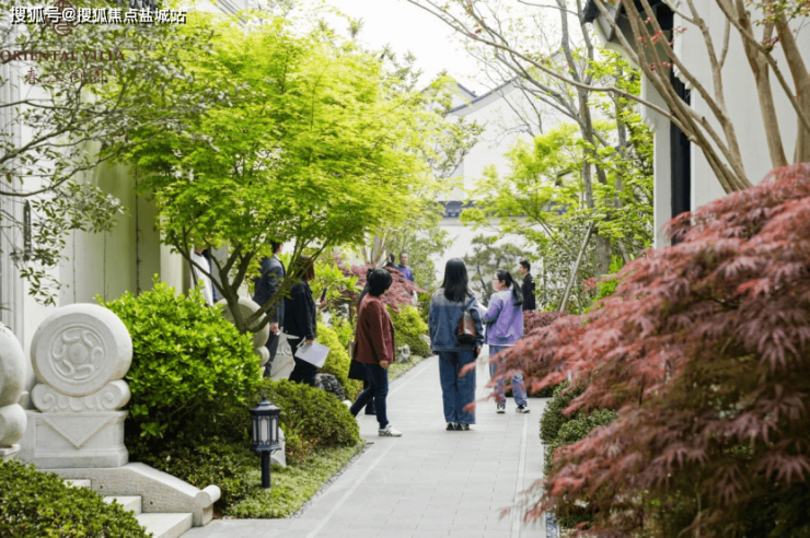 门窗、影壁、屋顶等经典中式型材与凯撒灰石材等创新中式型材巧妙融合,使得建筑整体仿若高冠博带的雅仕,踏风而来、明朗雅逸。枫、松、红梅、鸿运果等颇具中式特色的盆景,虚实相映,沿途比比皆是,生活鉴赏家们感受着古今人居美学的相融相生,触摸着由真材实料勾勒而成的建筑中,所蕴含着的匠心之美。