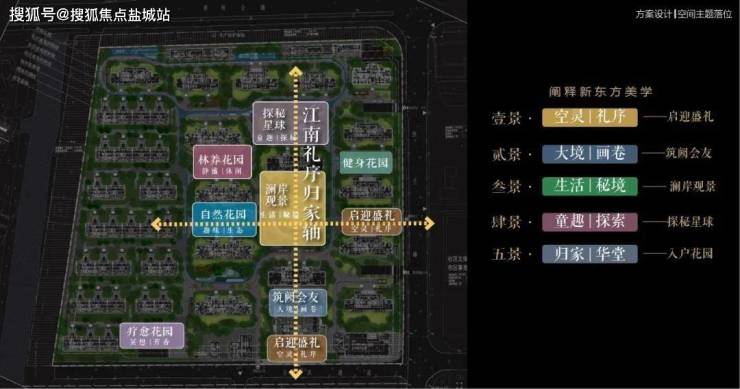 以江南人文精神为源点,打造两轴一环五进空间,江南礼序归家轴串联启迎盛礼、筑阙会友、归家华堂等5重礼制,尊崇归家;健康运动轴以24小时跑道为社区活力生活环,串联儿童乐园、长者康养、疗愈花园等10大生活场景,营造全龄全时的江南诗意生活