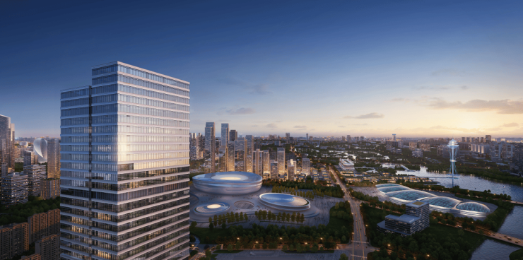 杭珹未来中心写字楼以领航中轴封面的商务地标形象,与城市共生长。