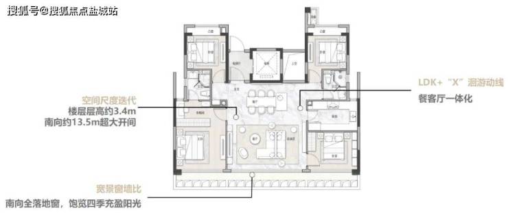 中叠135㎡大平层——四开间朝南,南向面宽高达约13.5米,约5.9米超宽开间客厅,可拓展独立多变可开合书房可以开拓家庭影院、亲子互动区、钢琴区、茶室等,营造不同的生活场景,还可与客厅联通形成完全开放的交流空间,特别适合亲朋宴请或home party。主卧采用酒店套房式布局拥有独立衣帽间及卫生间,提升整体空间品质感。
