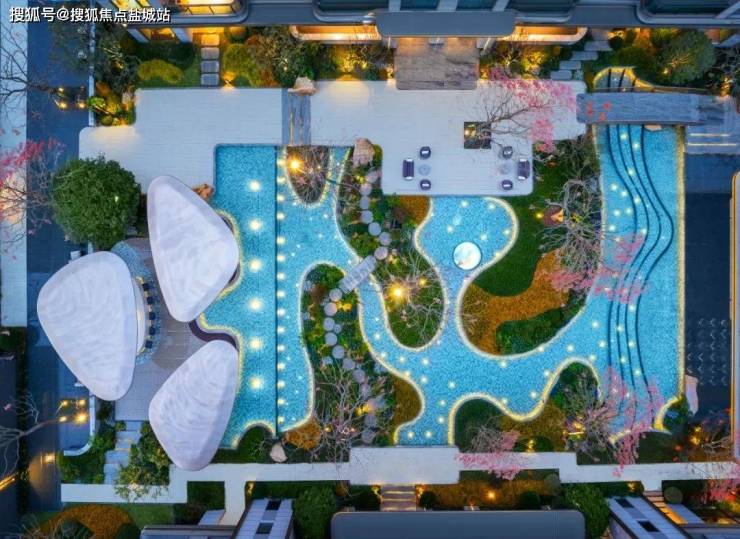 结合自然生活美学、人群居住习惯及潜在客群的特殊诉求,设计将社区中心花园以海浪的力量为灵感,通过巧妙的地形变化和园林设计,营造出层次丰富、有力量感的空间,并在其中置入大量不同尺度、开合的公共空间,为使用者构建一个充满仪式感、丰富且有层次的日常生活场景。