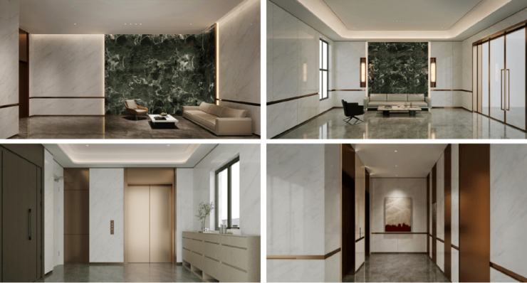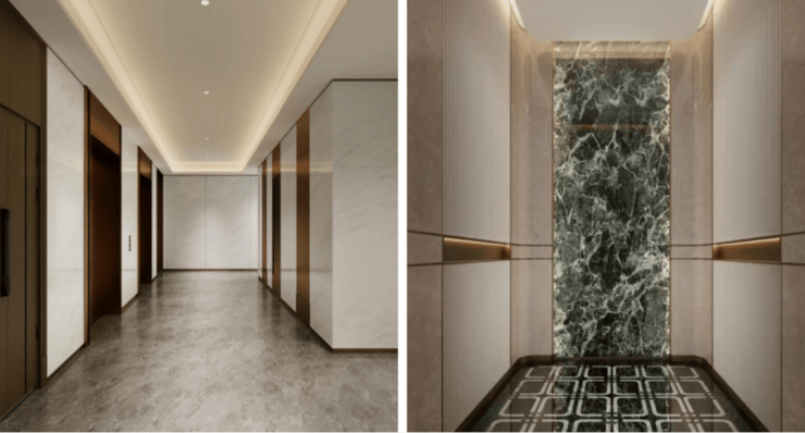 »3重精装归家大堂:实景打造精装地下室入户大堂、首层入户大堂、标准层电梯间3维归家仪式动线,完美呈现品质生活细节。