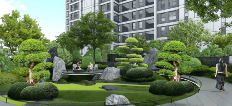 »国际新东方园林:规划「一轴两环五境九景」,融合林下花园、科普花园、邻里花园 、青春球场、稚子童心、运动花园及多个功能场地。