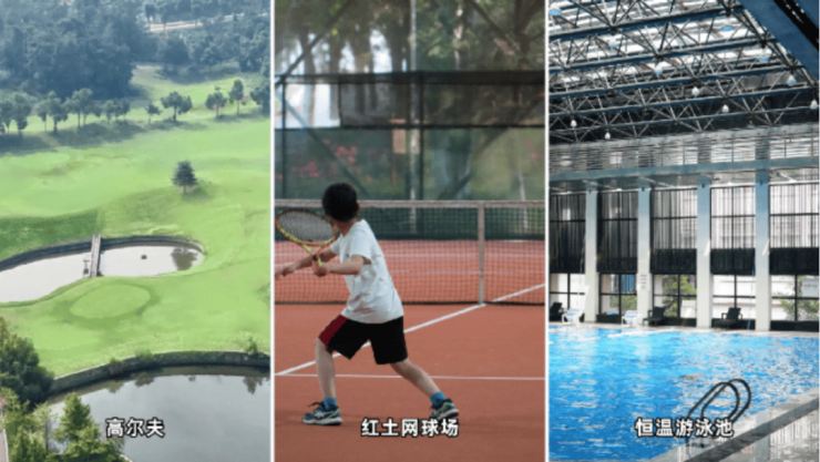 √ 恒温游泳池、红土网球场、高尔夫球场等