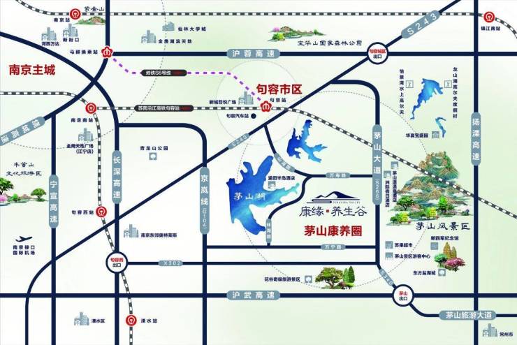 S6号线句容站(马群至句容)南沿至茅山站(位于项目一公里范围内);
