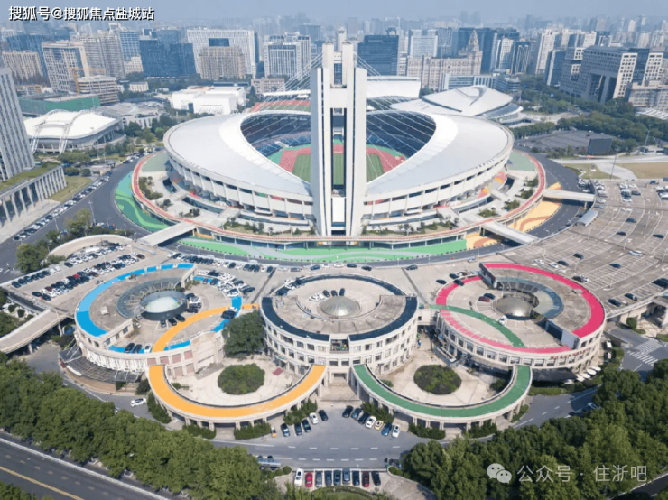 总占地面积约580亩,包括60000座位的体育场、8000座位的体育馆、2938座位的游跳馆。