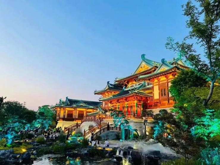 总体规划形成“一街、一水、一禅、一堂、一馆、两湖”的景点脉络,再现“浪漫六朝,风雅国潮”的风华妙境
