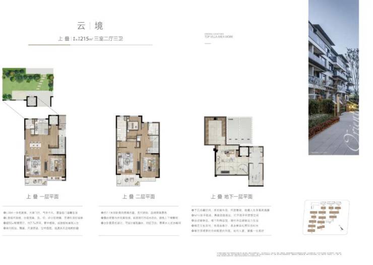 上叠户均约215㎡,3-4层附带地下室