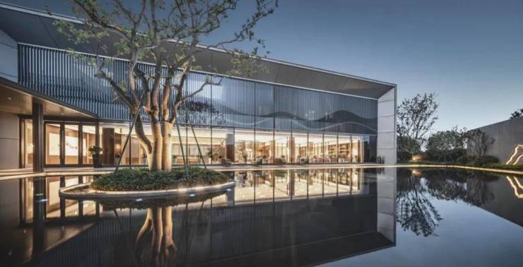 外立面采用大量铝板,结合大玻璃幕墙,形成超大窗墙比的进阶墅品