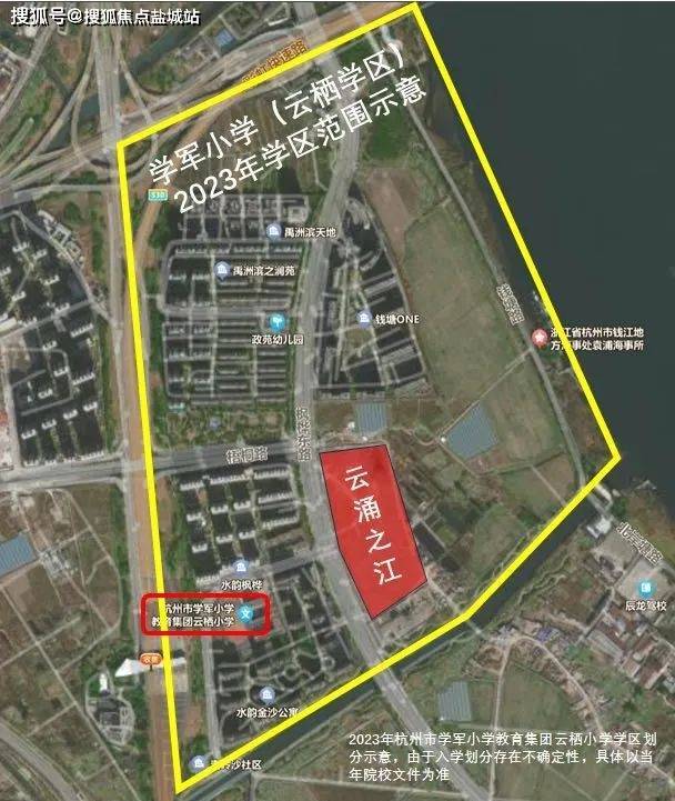 直线约300米,就是学军小学云栖校区,2022年开始招生,师资完全与本部集团打通。