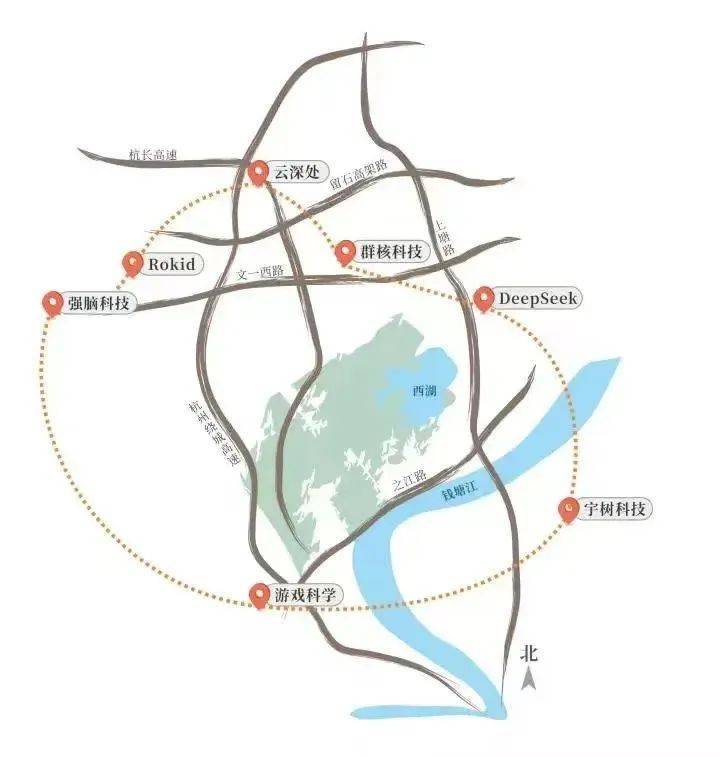 而这只是冰山一角:游戏科学《黑神话:悟空》横扫全球游戏榜,云深处科技的山猫机器狗刷屏全球社媒,宇树科技旗下的机器人在春晚舞台跳起了《秧Bot》……一场由"杭州六小龙"(深度求索、宇树科技、云深处、游戏科学、群核科技、强脑科技)领衔的科创风暴,正让世界重新定义这座城市的未来基因。