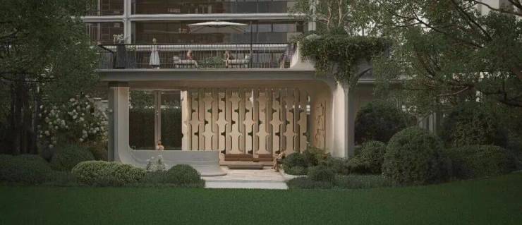 社区内部的立体花园,与北外滩中央绿地形成 “城市绿脉+社区绿芯” 的呼应,实现 “出则融入城市繁华,入则沉浸自然静谧” 的切换