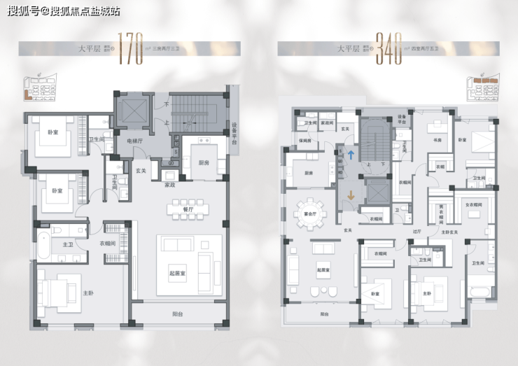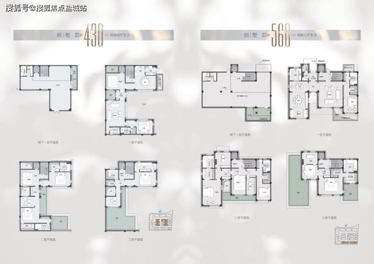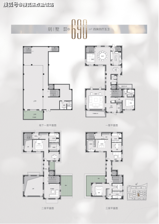 1号楼为保障房,2、3、4、8#为洋房平层,5、6、7、9、10#为别墅。洋房建面约170-340㎡,别墅建面约430-690㎡。