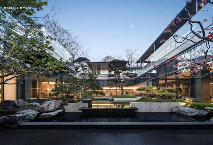 臻选100年黑松、100年石榴树、80年紫薇树、30年乌桕等名木,维纳多、金沙江、芬迪灰、赛琳灰、浣溪沙、青山湖等奢石
