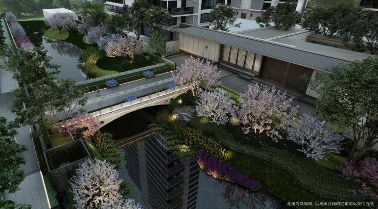 项目地块北侧为向心河,在河西中部私享一片水岸,未来将引桥入园、步桥归家