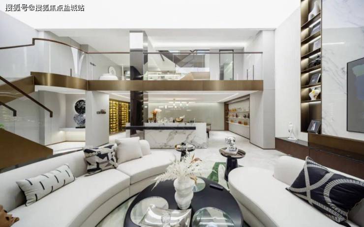 餐厅 厨房与楼梯间,设立了开放的中岛台,形成视觉隔断,在增添功能性的同时,也流露出设计师严谨的美学思考,以及对空间节奏的把控!沿梯下行楼梯利用灯光,呈现出轻盈的悬浮感,夹层作为阅读空间延续了整体色调,在黑白之中求得平衡 不张扬 也不喧闹,弧形沙发和圆形茶几带来的包围感!
