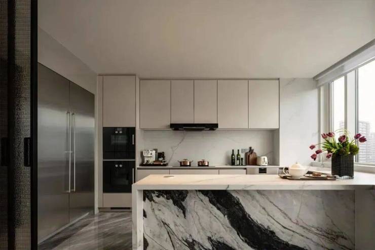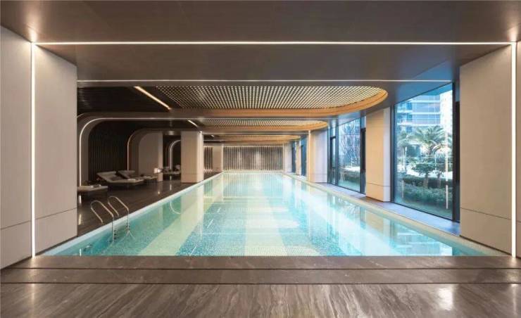 第一层刻度,工艺、用材经得起时间考验。建筑外立面以铝板、干挂石材、大面积玻璃为主要材质,主色调是豪宅标志性的高级灰,阳光下折射出层次丰富的光影效果。10年后,这种经典感依然不会褪色。