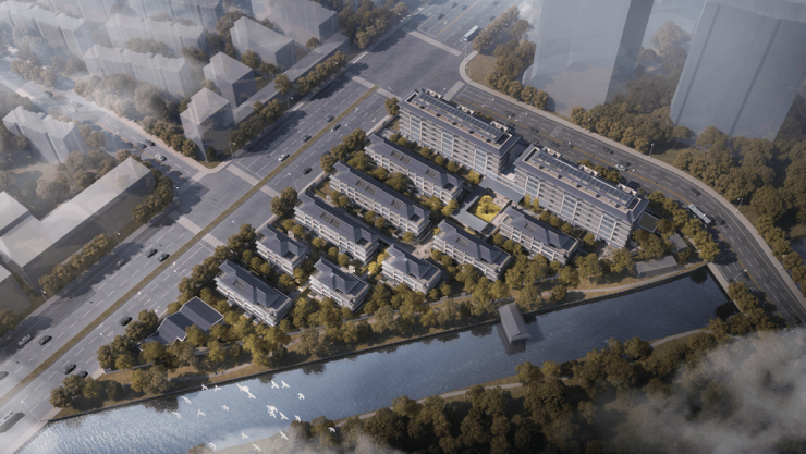 项目总用地面积 15584㎡,总建筑面积达约 31678.2㎡,其中地上计容建筑面积 18778.2㎡,地下建筑面积 12900㎡。容积率 1.2,建筑密度 32%,绿地率 30%,规划 9 幢 4F 排屋和 2 幢 6F 洋房,仅 61 户。
