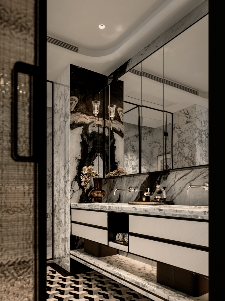 酒店级硬装标准:这种入户大堂的规格,即便在杭州顶级大平层市场都屈指可数。