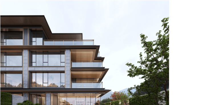 ◎ 风光退隐:把建筑向自然打开,布局多重阳台,与自然风景无界融合。
