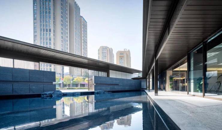 桐凤里以宋韵风雅为笔,构筑“桐凤八境”礼序格局。入口处“凤栖梧”恢弘门庭,配上造型黑松,宛如一扇通往风雅宋的“时光之门”,缓步向前,波光粼粼的“水云天”水景、饱含宋韵的“踏莎行”观景回廊,满园景致皆入画,无一处不是宋风画卷照进现实。