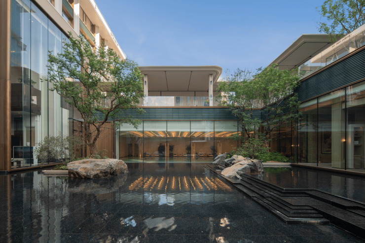 设计部分,也能体现中建玖上琅宸的好产品标准。项目集结了line+孟凡浩、GTS蓝颂宋淑华、CCD郑忠及中建体系内优秀设计力量,尤其以上海豫园为灵感,在社区内部打造了一座当代立体山水。中建玖上琅宸全冠移植了乌桕树、百年罗汉松、红枫、铁冬青等昂贵树种,引水入园,再造了一片悬瀑石涧的立体式城市山林。