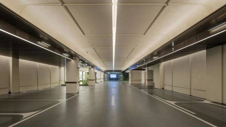 舍得投入时间和资金成本,景德镇陶板最终给项目带来特殊美感:镶嵌在架空层的天青色瓷板,呈现出由浅至深的渐变,外立面向陶板则如钢琴键交错排列,拼接缝隙精细至毫米级,与建筑线条浑然一体。