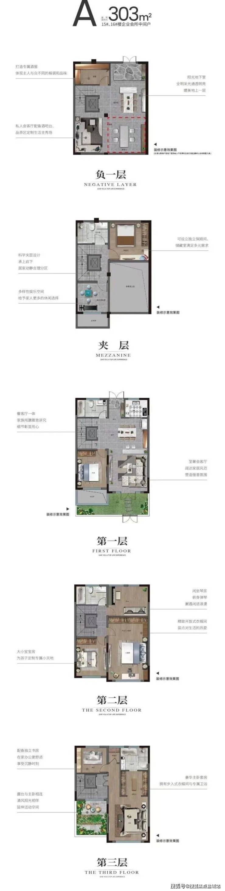 项目采用类五层设计,前后约60㎡双庭院,拓展更多生活维度;约5.1米挑高地下空间可随心打造为家庭影院、健身房、酒窖或收藏室,满足多元生活想象。无论是三代同堂的天伦之乐,还是朋友相聚的热闹派对,亦或是独处时的静谧时光,在这里都能找到最舒适的打开方式。