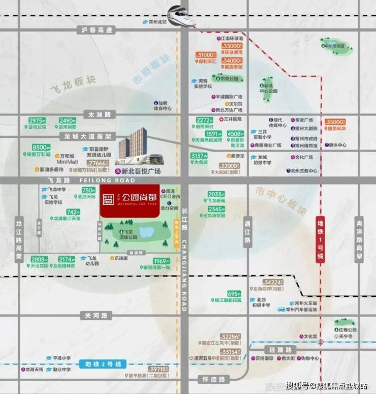 项目地处飞龙板块核芯,北邻新北万达商圈,南靠市芯商圈,精英资源荟萃;与新北飞龙吾悦一路之隔,周围新北万达广场、麦德龙广场等商综林立;飞龙社区卫生站、阳光康复医院、三井人民医院等医疗资源环伺;通江路、长江路、龙城大道等主干道环伺,紧邻常州地铁3号线(规划中),距离飞龙公交站约100米,立体路网,速抵全城。