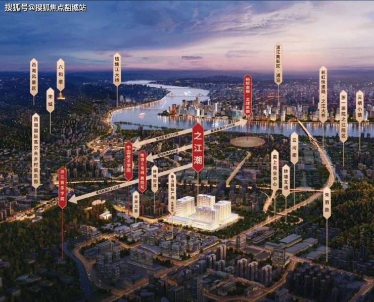 项目坐落于杭州市西湖区之江新城核心板块,毗邻富阳银湖开发区,紧邻杭州绕城高速西线转塘枢纽。地块北侧与中国美术学院、浙江音乐学院等高等艺术学府接壤,所处区域为政府重点规划的国家级文旅发展示范区,兼具钱塘江景观资源与西湖风景名胜区双重生态优势。