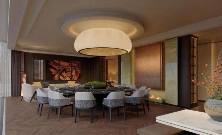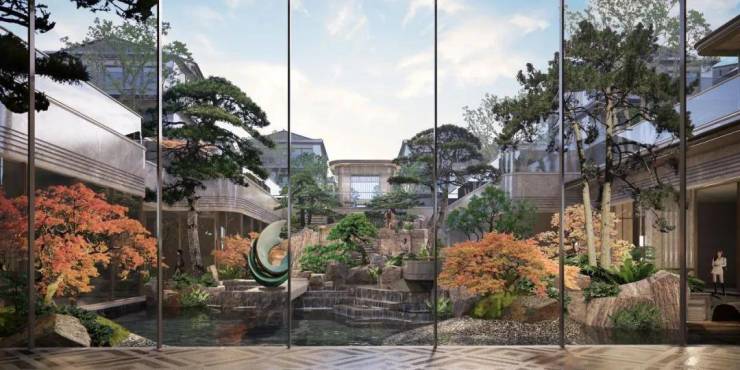 建筑风格上,将雅奢宋韵与现代设计理念做结合,空中平墅采用大面积落地玻璃+铝板线条,宋风院墅叠加石材装饰,端庄不失典雅。